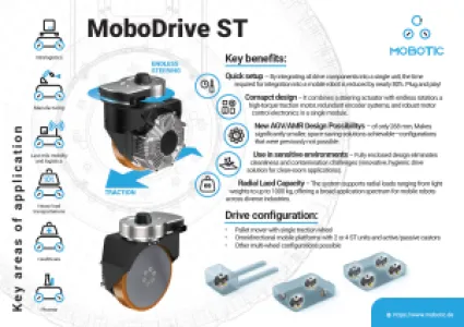 MoboDrive ST can be integrated into robots across diverse industries such as manufacturing, intralogistics, agriculture, security and surveillance, last mile mobility and logistics, heavy load transportation, pharma and healthcare.