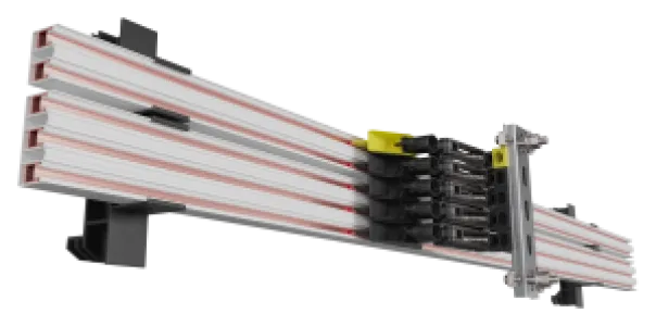 The VKS10 by VAHLE is a compact conductor system designed for stacker cranes, widely used by leading suppliers. It supports the transmission of drive power, control currents, and signals. With up to 10 poles and a wide power range, it is ideal for various applications, including aisle and lift mast use.
